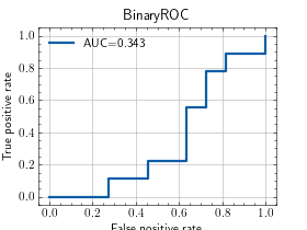 >>> from torch import rand, randint >>> from torchmetrics.classification import BinaryROC >>> preds = rand(20) >>> target = randint(2, (20,)) >>> metric = BinaryROC() >>> metric.update(preds, target) >>> fig_, ax_ = metric.plot(score=True)