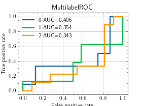 >>> from torch import rand, randint >>> from torchmetrics.classification import MultilabelROC >>> preds = rand(20, 3) >>> target = randint(2, (20,3)) >>> metric = MultilabelROC(num_labels=3) >>> metric.update(preds, target) >>> fig_, ax_ = metric.plot(score=True)