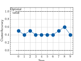 >>> # Example plotting multiple values >>> import torch >>> from torchmetrics.clustering import ClusterAccuracy >>> metric = ClusterAccuracy(num_classes=4) >>> values = [ ] >>> for _ in range(10): ... values.append(metric(torch.randint(0, 4, (10,)), torch.randint(0, 4, (10,)))) >>> fig_, ax_ = metric.plot(values)